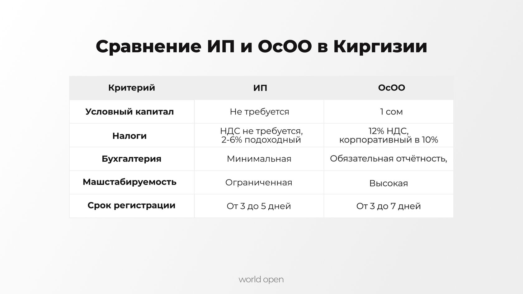 Команда World Open поможет открыть бизнес в Киргизии, выбрать налоговый режим и сопровождать отчётность: